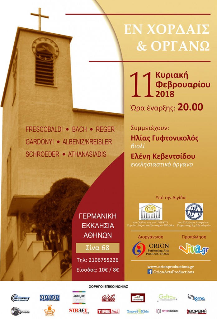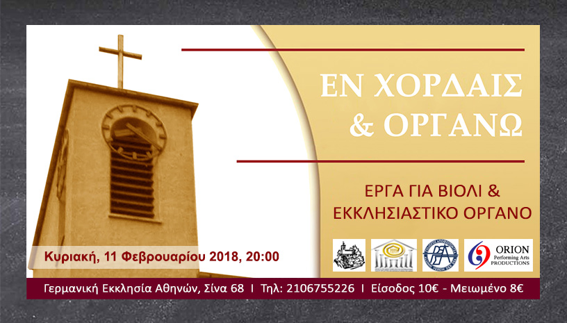 Συναυλία για βιολί και εκκλησιαστικό όργανο στη Γερμανική Εκκλησία Αθηνών την Κυριακή 11 Φεβρουαρίου 2018 στις 20:00