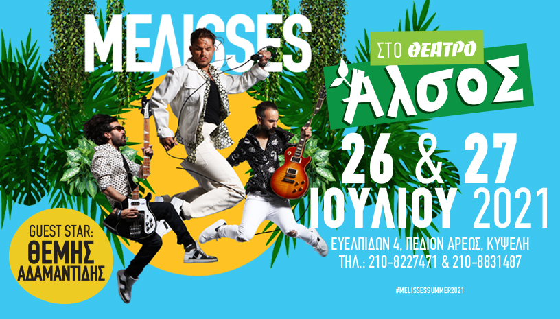 ΟΙ ΜΕΛΙSSES για δύο επιπλέον παραστάσεις στο Θέατρο Άλσος.Guest Star ο Θέμης ΑδαμαντίδηςΔευτέρα 26 & Τρίτη 27 Ιουλίου 2021Το Νο1 συγκρότημα ανοίγει τα φτερά του και προσγειώνεται στο φυσικό του περιβάλλον,στο Θέατρο Άλσος για δύο ακόμα παραστάσεις.Οι ΜΕΛΙSSES έχοντας στο ενεργητικό τους περισσότερα από 1200 live στα 12 χρόνιατους, αποδεικνύουν ότι το δυνατό τους χαρακτηριστικό παραμένει η επαφή τους με τονκόσμο. Το αγαπημένο συγκρότημα έρχεται στο Θέατρο Άλσος και παρουσιάζει έναπρόγραμμα γεμάτο από τις επιτυχίες του όπως «Το Κύμα», το «Έλεγες», το «Γιατί», το«Όλα Μοιάζουν Καλοκαίρι», το «Δεν Έχω Ιδέα», το «Είμαι Αλλού», το «Κρυφτό», το «ΈναΛεπτό» αλλά και μοναδικές διασκευές που όλοι έχουμε αγαπήσει.Μαζί τους επί σκηνής θα βρίσκεται ο ένας και μοναδικός Θέμης Αδαμαντίδης. Τεράστιες επιτυχίες όπως το «Στην Καρδιά», το «Μα πού να Πάω», το «Γιασεμί» θατραγουδηθούν μοναδικά στην σκηνή του Θεάτρου Άλσος.Οι ΜΕΛΙSSES αγαπάνε τη μουσική και ξέρουν να γράφουν τραγούδια που αγαπιούνται καιτραγουδιούνται από όλο τον κόσμο. Το 2019 το τραγούδι «Δεν Έχω Ιδέα» κατακτά την νο1θέση στο επίσημο ραδιοφωνικό chart της χρονιάς (Official IFPI Top 200 Airplay Chart), ενώτο 2020 είναι η χρονιά τους μιας και κατακτούν πάλι την νο1 θέση με το τραγούδι «ΜισήΚαρδιά» αλλά και την νο2 θέση με το duet του Χρήστου Μάστορα και του Δημήτρη Μπάση«Ένα Λεπτό». Με δεκατρία τραγούδια στο ΤΟP 10 του Airplay Chart , εφτά από τα οποίαστο Νο1 για περισσότερες από 70 εβδομάδες και με περισσότερα από 310.000.000 viewsστο YouTube το συγκρότημα αποδεικνύει τόσο τη δυναμική του όσο και την αγάπη τουκόσμουΣε όλα τα χρόνια που δραστηριοποιούνται έχουν συνεργαστεί δισκογραφικά και επί σκηνήςμε περισσότερους από 30 καλλιτέχνες από όλα τα είδη της μουσικής. Πριν λίγους μήνεςμάλιστα κυκλοφόρησαν και το νέο τους album με τίτλο ΜΕΛΙSSES DUETS πουπεριλαμβάνει 24 ντουέτα με 11 σημαντικούς τραγουδιστές από όλο τα φάσμα της μουσικής,από rap και pop μέχρι λαϊκό και δημοτικό.