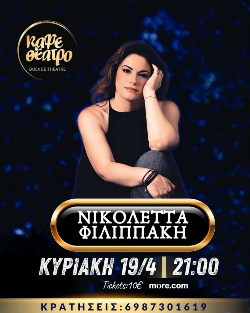 Η Νικολέττα Φιλιππάκη, μετά την sold out εμφάνισή της τον Μάρτιο, ανεβαίνει ξανά στη σκηνή του Καφεθέατρου την Κυριακή 19 Απριλίου, για μια ακόμα ζωντανή εμφάνιση που δεν πρέπει να χάσετε!
