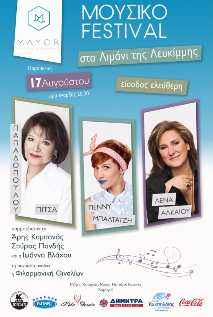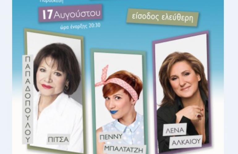 H όμορφη αυτή εκδήλωση είχε στο τιμόνι της διοργάνωσης την Αθηνά Τσαμαδού και πραγματοποιήθηκε με μέγα χορηγό τον όμιλο Mayor Hotels& Resorts, προσφέροντας στο φιλοθεάμον κοινό δωρεάν είσοδο σε αξέχαστες μουσικές στιγμές, μέσα από την ερμηνευτική κατάθεση της Πίτσας Παπαδοπούλου, της Λένας Αλκαίου και της Πένυς Μπαλτατζή.