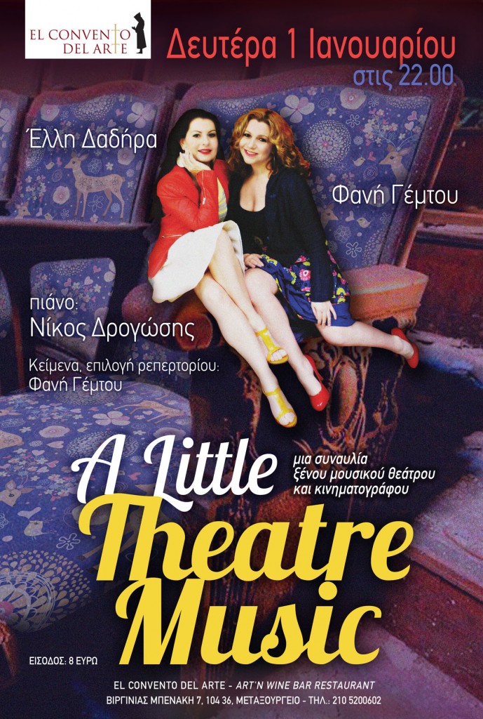 Tην πρώτη μέρα του χρόνου, η συναυλία A Little Theatre Music κάνει δυναμικό ποδαρικό στο 2018, παρουσιάζοντας τραγούδια ξένου θεάτρου και κινηματογράφου, καθώς διασχίζει την ιστορία των μεγάλων μιούζικαλ του εξωτερικού και των ρόλων τους.