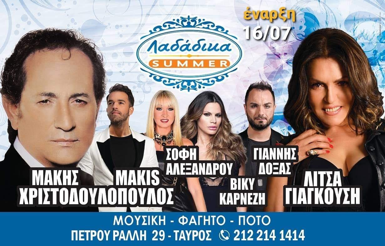 Ο «άρχοντας» του λαϊκού πενταγράμμου, Μάκης Χριστοδουλόπουλος, θα φροντίσει, να «Μην Κοιμάστε τώρα πια τα βράδια», της Παρασκευής και του Σαββάτου, να τραγουδάτε μαζί του, «Απορώ με την Καρδιά μου», και οι καρδιές σας, να μην έχουν πια «Αμπάρες» και «Ραγισμένα Μάτια», γιατί «Δεν μοιάζει κανενός». «Όταν μία γυναίκα» ξέρει, όπως η σπουδαία ερμηνεύτρια, Λίτσα Γιαγκούση, θα θες να πάρεις «Αεροπλάνο», και για «Χαλάλι της», να βρεθείς, «Που Αλλού», στα «Λαδάδικα Summer»!