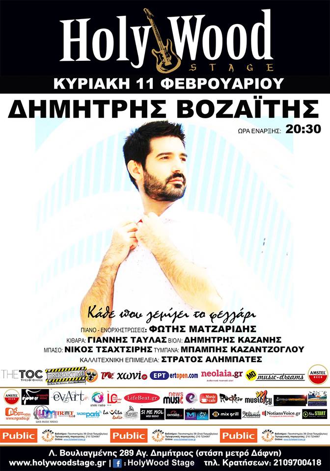 Ο κατάμεστος χώρος του HolyWood stage αποτελεί ιδανικό σκηνικό για τον χαρισματικό ερμηνευτή Δημήτρη Βοζαΐτη, ο οποίος σε κάθε του εμφάνιση δημιουργεί μία άκρως αισθαντική βραδιά, αφήνοντάς μας πάντα με τις καλύτερες εντυπώσεις και επισφραγίζοντας την θέση του ανάμεσα στους καλλιτέχνες που διαθέτουν μια ξεχωριστή ποιότητα.Για ακόμη μία αισθαντική βραδιά, θα απολαύσουμε τον Δημήτρη Βοζαϊτη στο HolyWood stage στη παράσταση με τίτλο “Κάθε που γεμίζει το φεγγάρι” αυτή την Κυριακή 11 Φεβρουαρίου στις 20.30 το βράδυ.