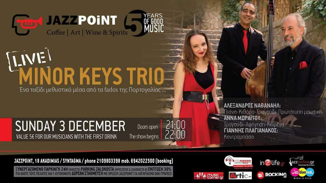 Οι Minor Keys Trio έρχονται για ένα live στο Jazzpoint την Κυριακή 3 Δεκεμβρίου.