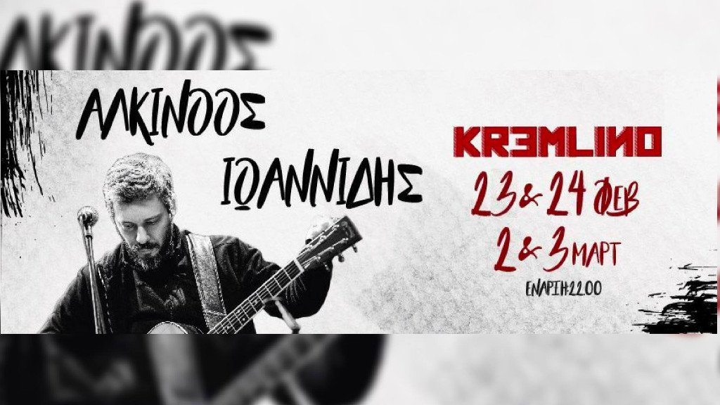 Ο Αλκίνοος Ιωαννίδης στο «Kremlino» για δύο παρασκευοσάββατα 23- 24 Φεβρουαρίου και 02- 03 Μαρτίου 2018.