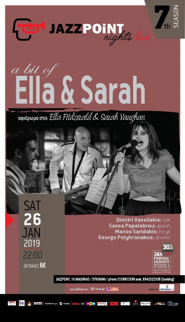 Ένα αφιέρωμα σε δύο κορυφαίες γυναικείες φωνές, τις Ella Fitdzerald και Sarah Vaughan, μαζί με την μοναδική φωνή της Σάσσας Παπαλάμπρου και τους εξαιρετικούς μουσικούς Μάνο Σαριδάκη και Γιώργο Πολυχρονάκο.