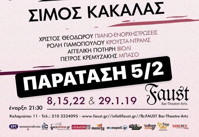 Υποσχόμαστε άμεση ανακούφιση σε ευχάριστο περιβάλλον από ικανούς και ακούραστους επαγγελματίες. Γιατί να πας αλλού; Έλα στο «Faust», 8 Ιανουαρίου η πρώτη εμφάνιση, ακολουθούν 15, 22 & 29 Ιανουαρίου. Έξτρα υπηρεσία: χαλαρώνοντας, μπορείτε να απολαύσετε το ποτό σας ακούγοντας τραγούδια που λατρέψατε, γελάσατε, ερωτευτήκατε, αλλά και μισήσατε.