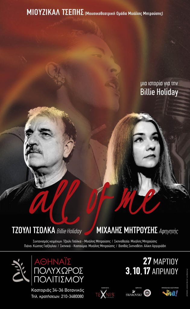 Το «Μιούζικαλ Τσέπης» (Μουσικοθεατρική ομάδα Μιχάλης Μητρούσης) συμπληρώνοντας τα 10 χρόνια λειτουργίας του παρουσιάζει την παράσταση «All Of Me»-«Μια ιστορία για την Billie Holiday».