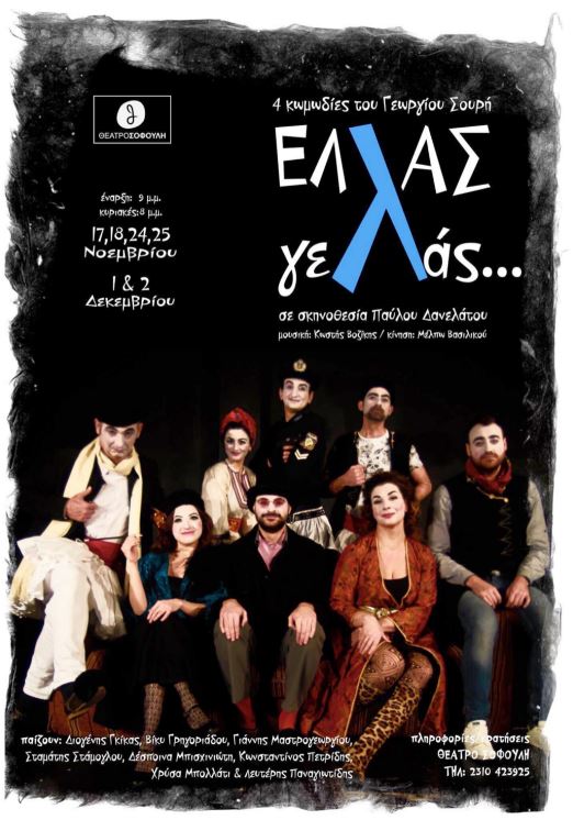 Μετά τις sold out παραστάσεις της προηγούμενης σαιζόν, το Αˊ βραβείο κοινού, το βραβείο κοστουμιών, πολλές υποψηφιότητες στα θεατρικά βραβεία Θεσσαλονίκης, αλλά και τις καλύτερες κριτικές που έλαβε, η παράσταση «Ελλάς, γελάς…» επιστρέφει δριμύτερη για λίγες παραστάσεις στο θέατρο «Σοφούλη»! Η πρεμιέρα θα πραγματοποιηθεί το Σάββατο 17 Νοεμβρίου στις 21.00.«Ελλάς, γελάς…».