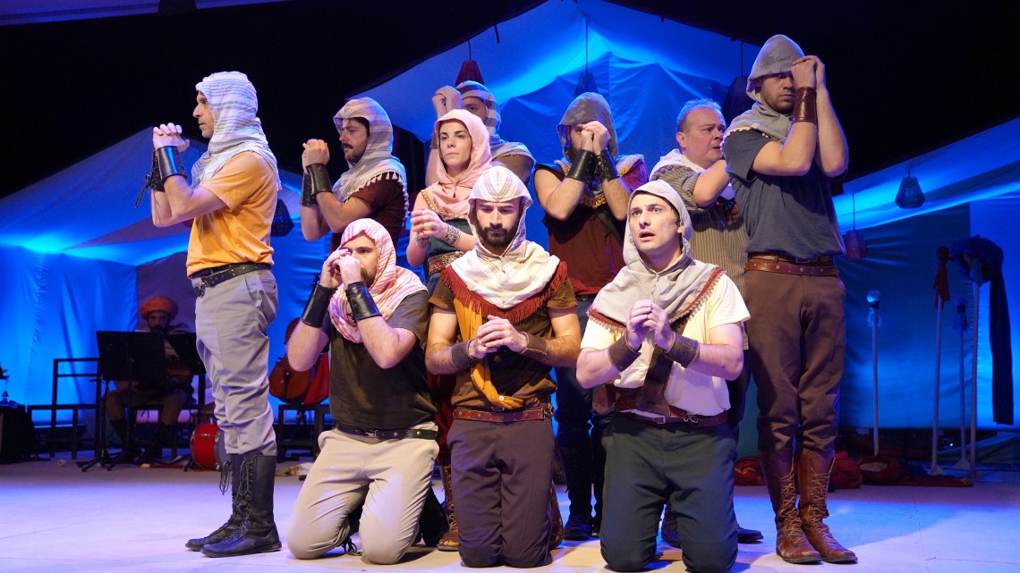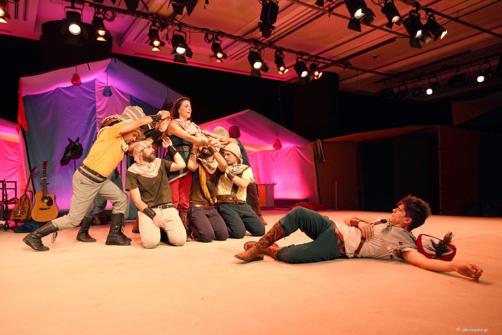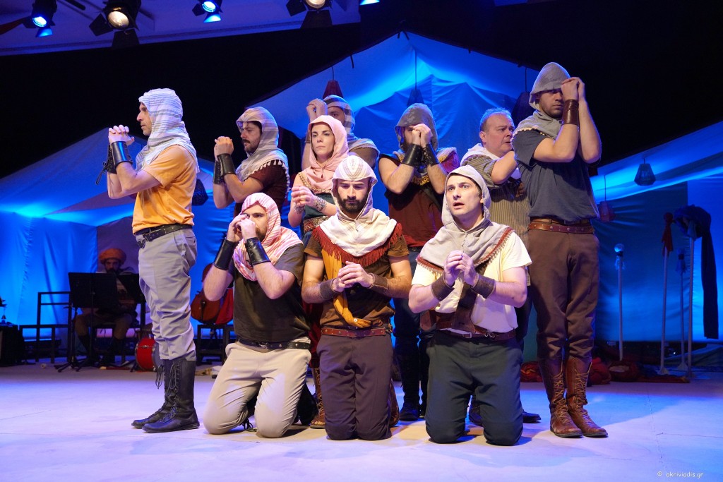 Με ζωντανή μουσική και θίασο 12 ηθοποιών και μουσικών: Μιχάλης Βρεττός, Θανάσης Δόβρης, Ορφέας Ζαφειρόπουλος, Μιχάλης Κοιλάκος, Ειρήνη Κωσταντίνου, Σωτήρης Μεντζέλος, Γιάννης Μπισμπικόπουλος, Γρηγόρης Ποιμενίδης, Γιώργος Τσούρμας, Γιώργος Φουντούκος, Θανάσης Χαλκιάς, Στέλιος Χατζηγεωργίου
