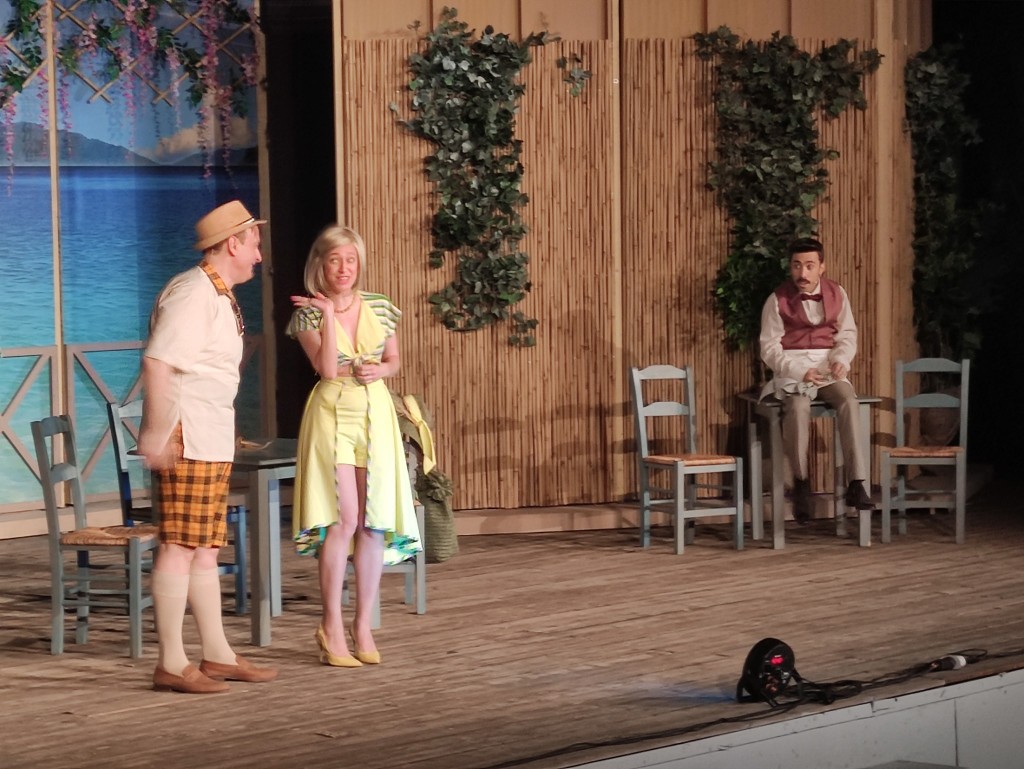Η Μαρία Κοκολάκη ως Ντέμπυ, μια πανέμορφη Αγγλίδα από την Ελλάδα (πώς είναι δυνατόν αυτό; Και όμως είναι…), αποτελεί μια πνοή νεανικής κομψότητας και δροσιάς η οποία έχει βάλει στόχο τα υψηλά πορτοφόλια είτε του Μάχου, είτε του Κλέαρχου…..σε όποιον λάχει ο κλήρος. Στο τέλος όμως, κερδίζει ο επιλαχών! Ο Αντώνης Καλομοιράκης, ως κολιτσίδας σερβιτόρος που ξέρει όλες τις ξένες γλώσσες που δεν ξέρει, προσφέρει άπειρα σκηνικά γέλιου και δένει αφάνταστα ως ερμηνεία με την Ντέμπυ και τους δύο γαμπρούς της συμφοράς. Στο τέλος όμως, βρίσκει κι αυτός τη δασκάλα του…
