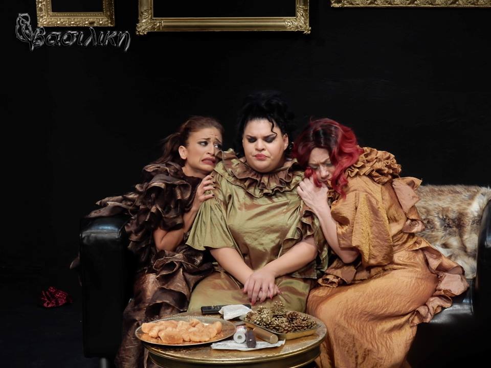 Βραδάκι Τετάρτης λοιπόν, κατευθύνομαι προς το L.A. Theater (Life & Art) στον Κεραμεικό, μία ώρα νωρίτερα όπως προστάζει το savoir vivre. Βασιλικό Δείπνο είναι αυτό, δεν είναι παίξε γέλασε! Εννιάμιση ώρα ακριβώς ξεκινάει η παράσταση. Τα φώτα ανάβουν, ακούγεται αγαπημένο άσμα των 80’s και βρίσκομαι στο σαλόνι της Βασίλισσας Κλεοπάτρας, της μίας εκ των τριών Βασιλισσών. Πλάσμα πληθωρικό με αβυσσαλέο ντεκολτέ και εμφάνιση grande που λατρεύει τα λούσα και τα κρουασανάκια. Αλωνίζει τη σκηνή στα ψηλοτάκουνα πέδιλά της και μονολογεί για το Θανάση. Ναι…είναι άλλη μία απατημένη σύζυγος και πρόσφατα εισήχθη στο club των χωρισμένων.