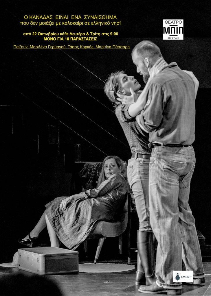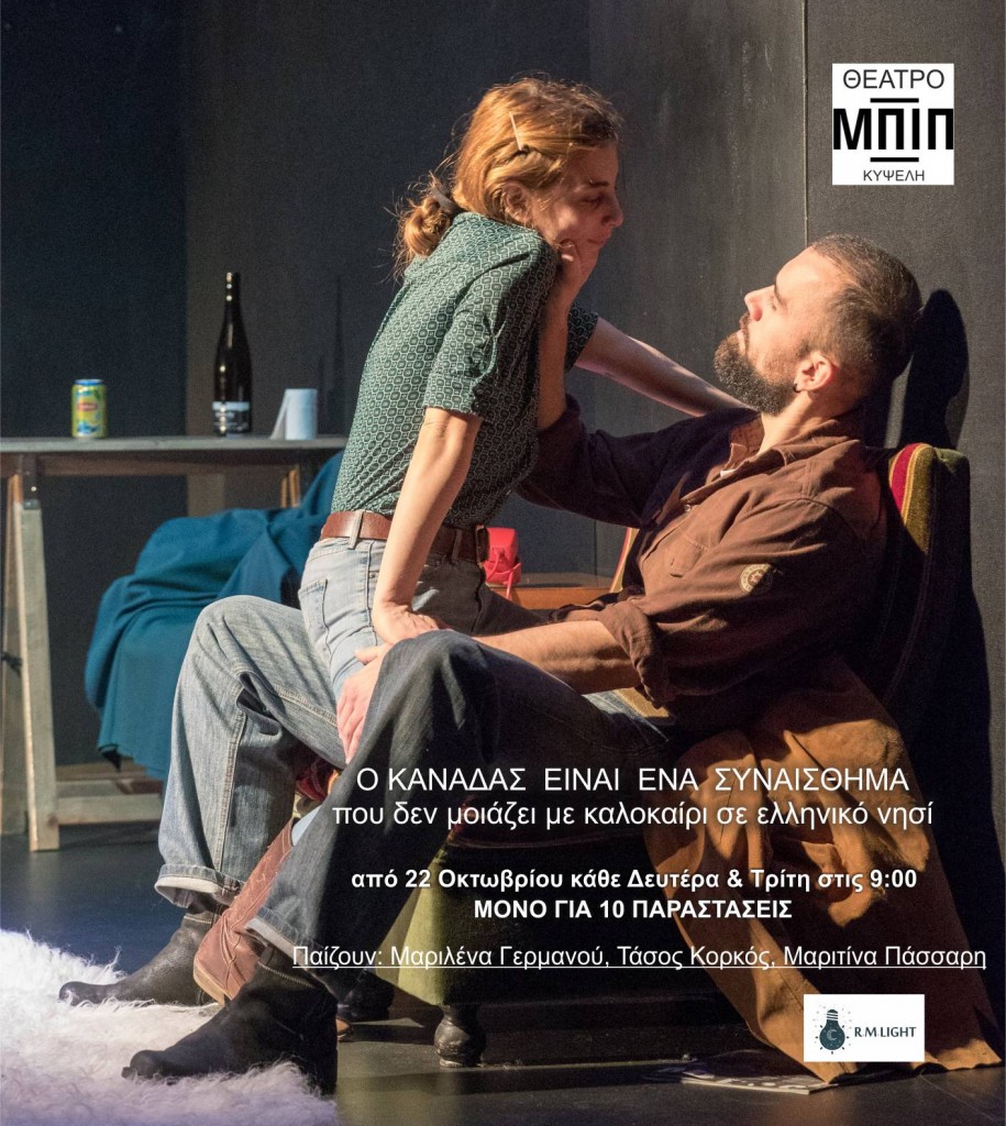 Βρεθήκαμε στο θέατρο «Μπιπ» για να παρακολουθήσουμε την παράσταση «Ο Καναδάς είναι ένα συναίσθημα που δεν μοιάζει με καλοκαίρι σε ελληνικό νησί» σε κείμενα και σκηνοθεσία Mαριτίνας Πάσσαρη. Μια παράσταση εμπνευσμένη από ένα διήγημα της Καναδής συγγραφέως Άλις Μονρό.