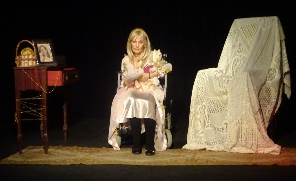 Μια γυναικεία φιγούρα φωτισμένη σε λευκοκίτρινο χρώμα και κρατώντας στην κοκκαλιάρικη αγκαλιά της, μία κούκλα vintage, σε τοποθετεί αμέσως στο περιβάλλον της ιστορίας. Η Λουκία είναι κολλημένη στο αναπηρικό καροτσάκι της. Ζει στο μεγάλο σπίτι της, απομονωμένη σ’ ένα δωμάτιο. Αυτό το δωμάτιο είναι όλος ο κόσμος της, καθώς κανείς δεν την επισκέπτεται. Ούτε καν, οι συγγενείς που καταλαμβάνουν το υπόλοιπο χώρο, η εξ αγχιστείας αδερφή της κι ο γαμπρός της.