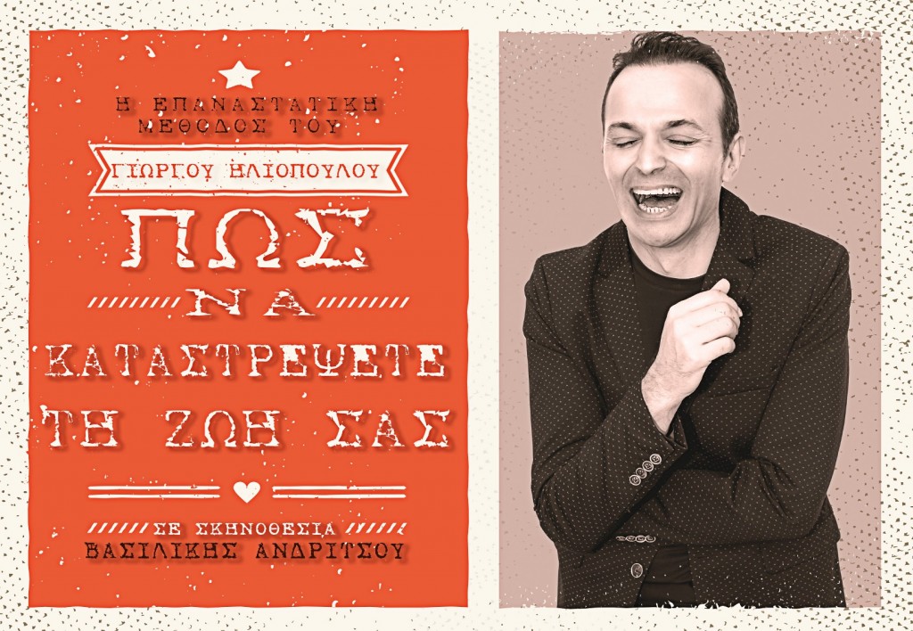 Ο Έλληνας Συγγραφέας και ηθοποιός Γιώργος Ηλιόπουλος που έργα του έχουν ανέβει όχι μόνο στην Ελλάδα αλλά και στο εξωτερικό συνεχίζει τις παραστάσεις του για λίγο ακόμα στο Αθηναϊκό κοινό. Το “Πως να καταστρέψετε την ζωή σας” συνεχίζεται μέχρι τέλος Μαρτίου κάθε Δευτέρα στις 21:00
