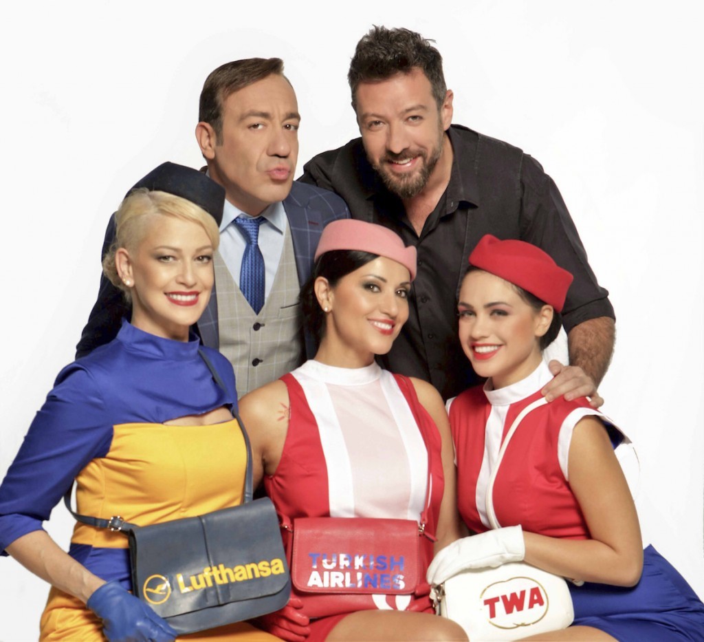 Στην Ελληνική απόδοση της κλασικής φάρσας του Γάλλου Marc Camoletti «Boeing Boeing», που μετά το West End και το Βroadway παρουσιάζεται και στην Ελλάδα, ο Σωτήρης (Σωτήρης Καλυβάτσης) ως σύγχρονος play boy και πετυχημένος αρχιτέκτονας, παίζει σε τριπλό ταμπλό το επικίνδυνο χόμπι της πολυγαμίας με 3 όμορφες αεροσυνοδούς, την Τουρκάλα Μπαχάρ(Σοφία Παυλίδου), την ΑμερικανίδαΓκλόρια (Κόνι Μεταξά) και την Γερμανίδα Γκρέτχεν(Ρέα Τουτουντζή) που οι πτήσεις τους τις φέρνουν καθημερινά, αλλά χώρια, στην ερωτική του φωλιά. Όλα ανατρέπονται όμως τη μέρα που ο παιδικός φίλος του απο την Κρήτη, ο σύντεκνος αλλά και ερωτύλος Σήφης(Μάνος Παπαγιάννης) τον επισκέπτεται μετακομίζοντας στην Αθήνα, την ίδια ημέρα που αναπάντεχα αλλάζει το πρόγραμμα πτήσεων των τριών αεροσυνοδών και ξαφνικά θα πρέπει να μείνουν στην ερωτική φωλιά την ίδια ημέρα, χωρίς φυσικά να γνωρίζει η μία την ύπαρξη της άλλης… Τότε η έμπιστη και πανέξυπνη οικονόμος αλλά και φύλακας άγγελός του Μάνου η δαιμόνια Κούλα (Βάσια Τριφύλλη)και ο επιστήθιος φίλος του καλούνται να πάρουν στα χέρια τους την ανεξέλεγκτη κατάσταση που οδηγεί σε ξεκαρδιστικές και απρόβλεπτες κωμικές ανατροπές με αποκορύφωμα το απογειωτικό και ανατρεπτικό……φινάλε!!