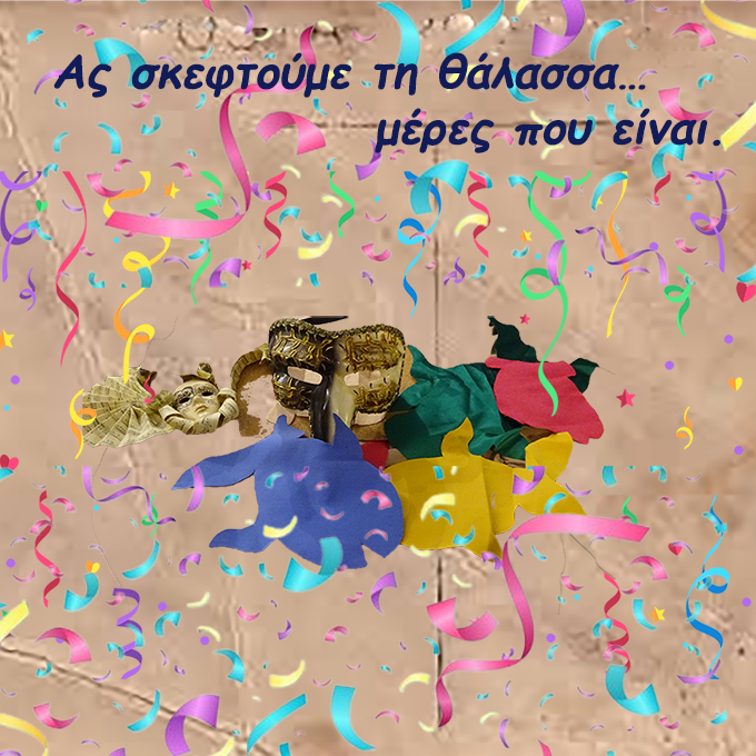 Την ημέρα της Καθαρά Δευτέρας γιορτάζουμε τα κούλουμα. Τρώμε λαγάνα και θαλασσινά. Μπορεί να τρώμε θαλασσινά αλλά, δε σκεφτόμαστε καθόλου τη θάλασσα. Σ’ αυτό το κυνήγι θησαυρού θα συνδυάσουμε Θάλασσα και Απόκριες.