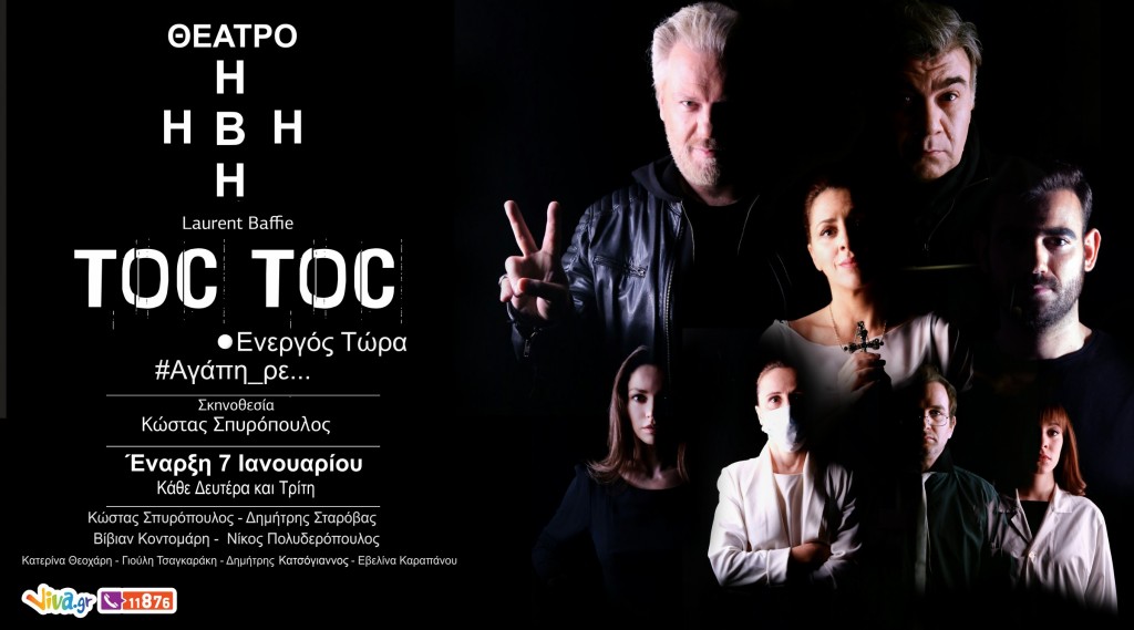 Ηεπιτυχημένη ψυχοθεραπευτική κωμωδία «Toc Toc» που παίχτηκε φέτος σε Αθήνα, Θεσσαλονίκη και Πάτρα, ολοκληρώνει τον κύκλο της με 5 τελευταίες παραστάσεις στο θέατρο «Ήβη»!!! Συγκεκριμένα το Σάββατο 6/4, καθώς και τα δύο επόμενα Σαββατοκύριακα 13/4-14/4 και 20/4-21/4 αντίστοιχα, οι θεατές θα έχουν την ευκαιρία να απολαύσουν την παράσταση που για 6 σεζόν… συγκινεί, ψυχαγωγεί και χαρίζει άφθονο γέλιο…αποδομώντας τις ιδεοψυχαναγκαστικές διαταραχές… και τις ιδεοληψίες… μέσα από τον μόνο δρόμο που μας έχει απομείνει… τον δρόμο… της αγάπης!!! Αγάπη ρεεεεεεεε!