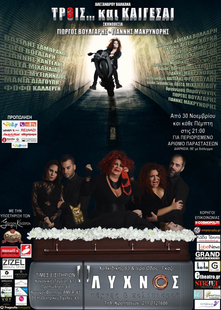 Ογνωστός ηθοποιός-σκηνοθέτης Γιώργος Βούλγαρης και ο ανερχόμενος κινηματογραφιστής-σκηνοθέτης Γιάννης Μακρυνόρης ενώνουν για άλλη μια φορά τις καλλιτεχνικές τους ανησυχίες και δυνάμεις και σκηνοθετούν από κοινού το σουρεαλιστικό, πρωτότυπο κείμενο του Αλέξανδρου Βαλκανά με τίτλο “Τρεις… και καίγεσαι”«Τρεις… και Καίγεσαι» του Αλέξανδρου Βαλκανά στο θέατρο Λύχνος Τέχνης και Πολιτισμού